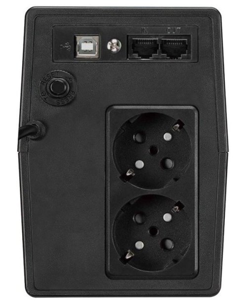 VÝSTUP Kapacita výstupního výkonu [W]: 480 Kapacita výstupního výkonu [VA]: 800 Výstupní napětí [V]: 220 Topologie: Line-interactive Typ křivky: Simulovaná sinusoida Výstupní přípojky: 2x Schuko
