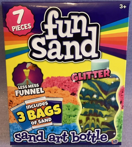 Zábavné tvoření a hraní s oblíbeným materiálem - pískem. Balení obsahuje: 3 druhy barevného písku (třpytivý nebo svítící), plastovou lahvičku, násypku. Upozornění: Druh písku (třpytivý nebo svítící) a barevné provedení dodáváme dle skladových zásob. Obrázek obalu má pouze ilustrativní charakter!