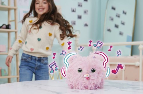 Roztomilé Koťátko, které se pomocí hry odhalí z plyšové chlupaté kuličky o velikosti cca 20 cm. Máš spoustu možností interaktivní zábavy jako házení, koulení, krmení, písničky a hry. FurrFluffs má více než 50 zvuků a reakcí. Hračka je určena pro děti od 5 let