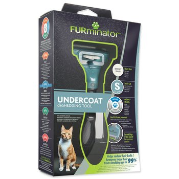 Vyčesávací hrablo FURminator pro krátkosrsté kočky malých plemen.Pomáhá také redukovat tvorbu chlupových bezoárů.