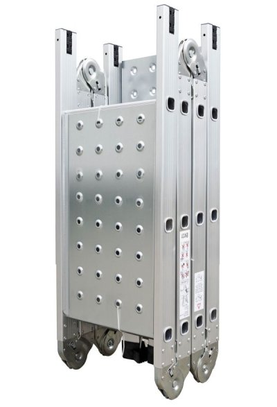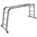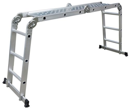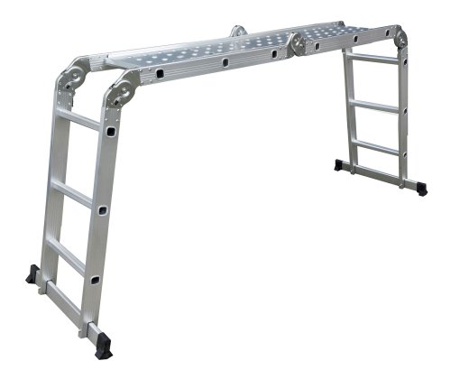 Hliníkové štafle můžete využít jednak jako dlouhý žebřík v délce až 3,7 m. Další variantou je možnost sestavit štafle jako přenosné lešení. Díky konstrukci s klouby lze štafle snadno umístit přes hřeben střechy.