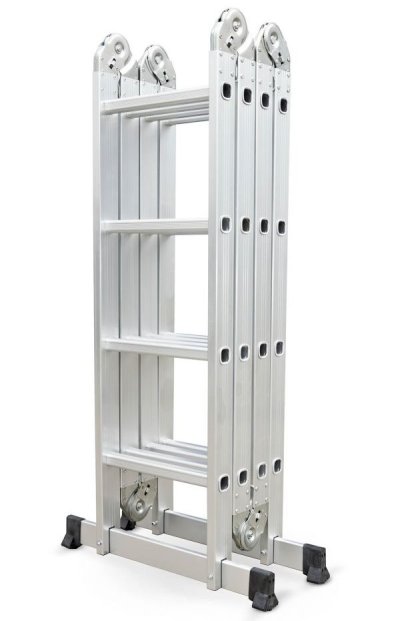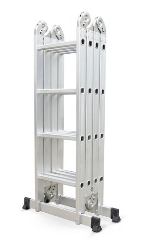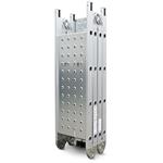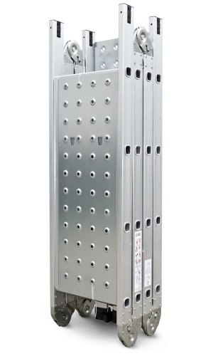 Hliníkové štafle můžete využít jednak jako dlouhý žebřík v délce až 4,6 m. Další variantou je možnost sestavit štafle jako přenosné lešení. Balení obsahuje 2 ks podlážek pro přestavbu štaflí na lešení. Díky konstrukci s klouby lze štafle snadno umístit přes hřeben střechy.