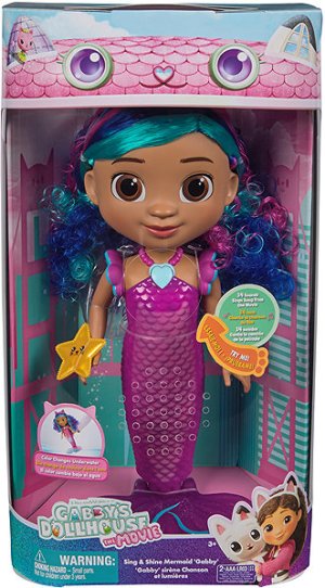 Interaktivní panenka Gabby v provedení mořské pany. Panenka má světelné a zvukové efekty. Spívá i titulní píseň z filmu v AJ. Rozměry balení 21x37,5x13 cm. Věk 3+