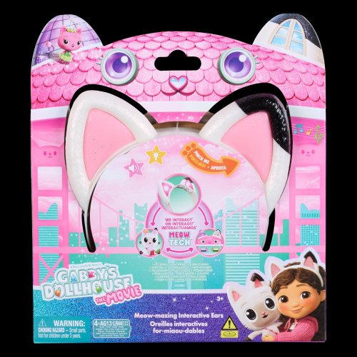 Úžasná dobrodružství začínají s interaktivní čelenkou – Gábininými úžasnými kočičími oušky! Tato 16,5 cm vysoká čelenka vypadá přesně jako Gábinina ikonická ouška a je jako stvořená pro vstup do jejího kouzelného světa. Čelenka má více než 20 zvukových efektů, světel a zvuků aktivovaných pohybem a inspiruje k nekonečnému hraní. Děti mohou zmáčknout levé nebo pravé ouško a přepínat mezi třemi zábavnými režimy: Taneční párty, režim Gábiny a Kočičí režim. Interaktivní ouška Gábiny navíc obsahují technologii Meow Tech – speciální funkci, která umožňuje propojení s interaktivním domečkem a interaktivní plyšovou Pandou Ťapkou pro ještě úžasnější propojenou hru! Ať už jde o narozeniny, Vánoce nebo jen kouzelnou hru na postavy z filmu, tato čelenka je skvělým způsobem, jak děti podpořit v tvořivé hře a vtáhnout je do úžasného světa Gábinina kouzelného domku s těmito roztomilými hračkami. Hračky z Gábinina kouzelného domku jsou jako stvořené pro děti, které si chtějí znovu prožít oblíbené chvíle z filmu o Gábině, nebo si vytvářet nová dobrodružství v jejím kouzelném domečku. Najdete tu hračky pro nejmenší– od doplňků do domečku a nábytku až po její mňau-skvělé kočičí kamarády a úžasné mořské víly. Každá hračka (prodávaná samostatně) nabízí hodiny a hodiny úžasné zábavy