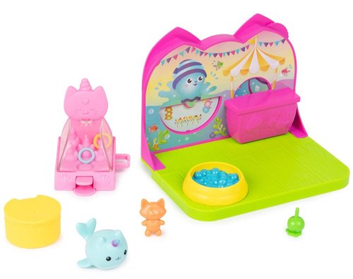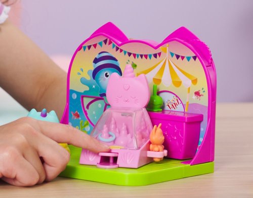 Připravte se na spoustu zábavy a zážitků s Kytočkou v soupravě Karnevalový pokoj! Tato hrací souprava obsahuje senzační karnevalový pokojíček a nábytek do kouzelného domku, který můžete použít jak na lodi Gábininých kočičích kamarádů, tak i v Gábinině perfektním domku (prodávají se zvlášť)! Obsahuje roztomiloučkou figurku Kytočky, která měří téměř 2 cm, bazén s míčky, hru na házení kočičích kroužků, dobroty a mnoho dalšího! Dejte Kytočku do bazénu s míčky, zkuste své štěstí v hodu kroužkem, vyhrajte cenu, otočte ovládacím kolečkem a vychutnejte si změnu prostředí! Potom si stejně jako Gábi na začátku každé epizody rozbalte svou speciální krabičku s překvapením a objevte další hračku – karamelové jablko. Jako poslední překvapení si naskenujte QR kód zevnitř krabičky s překvapením z Kouzelného domku a odemkněte si speciální odměnu v aplikaci Gábinin kouzelný domek (k dispozici pro iOS a Android). Pro ještě více způsobů, jak si hrát, hledejte loď Gábininých kočičích kamarádů, Gábinin perfektní kouzelný domek a tematické pokojíčky, abyste si ještě více vytvořili svět svého kouzelného domku (každý se prodává zvlášť)! Plyšáci, panenky, figurky a herní sady na motiv Gábinina kouzelného domku jsou perfektními hračkami pro dívky a chlapce, kteří rádi zapojují svou představivost k vytvoření svého vlastního světa Kouzelného domku, takže se připravte na nekončící dobrodružství s Kytočkou a jejím Karnevalovým pokojem z Gábinina kouzelného domku!