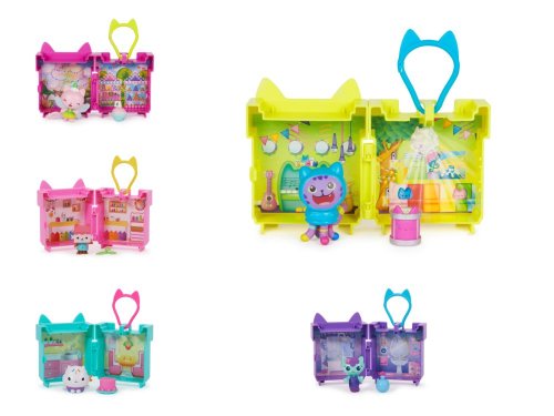Užijte si zábavu s námětovou hrou s připínací herní sadou Gábinina Kouzelného domku! Tato přenosná herní sada s Gábininým úžasným kamarádem Dorťátkem v super roztomilé kuchyňce pro panenky je dodávána s miniaturním pokojíčkem pro panenky s plastovou sponou pro připnutí na batoh, takže si ji můžete vzít kamkoli s sebou! Fanoušci seriálu Gábinin Kouzelný domek si zamilují možnost pověsit si tuto miniaturní herní sadu na tašku nebo batoh, aby si vzrušující dobrodružství s kouzelným domkem vzali s sebou, ať už jdou kamkoli! Vezměte si svou miniaturní herní sadu s sebou do auta, do vlaku nebo do letadla, a hned jak se usadíte s otevřete si svou herní sadu, objeví se miniaturní pokojíček pro panenky a můžete znovu prožívat své oblíbené scény ze seriálu! Potom, stejně jako Gábina na začátku každé epizody, rozbalte svůj balíček s překvapením a objevte tajemný doplněk, koťátkovitý dortík, který můžete použít při svých dobrodružstvích! Když skončí čas na hraní, vložte Dorťátko s doplňky dovnitř herní sady, zaklapněte ji a poté připněte na batoh, dokud zase nebudete mít čas si hrát! Chcete-li prožívat ještě více vzrušující eskapády s kouzelným domkem, sesbírejte všechny tři stohovatelné miniaturní herní sady Gábinina Kouzelného domku, jako je Krabiččina tvořírna a Ryboččina koupelna! (Každá se prodává samostatně) Jako poslední překvapení si naskenujte QR kód zevnitř krabičky s překvapením z Kouzelného domku a odemkněte si speciální odměnu v bezplatné aplikaci Gabby’s Dollhouse App (k dispozici pro iOS a Android). Plyšová zvířátka, panenky, figurky a herní sady Gábinina Kouzelného domku jsou ideální hračkou pro dívky a chlapce, kteří rádi využívají svou představivost k vytváření vlastního světa kouzelného domku!