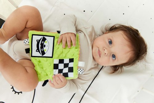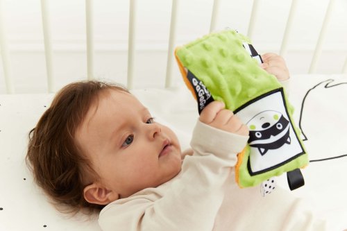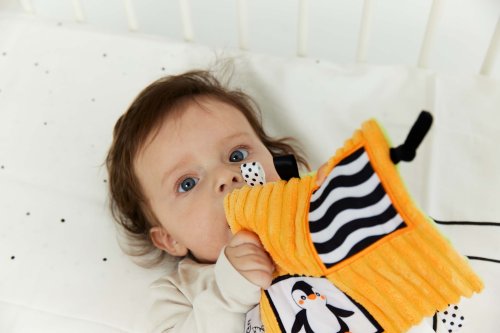 Skutečný génius je člověk, který má všestranné nadání a zájmy. Proto je třeba dbát na komplexní rozvoj již od prvních dnů života. V tom může pomoct oboustranná šusticí dečka s obrázkem tučňáka na jedné straně a mývala na druhé. Hračka je určena pro děti ve věku 0m+. Dečka má kontrastní barvy a vzory, což stimuluje zrak dítěte a šustivý materiál uvnitř hračky stimuluje jeho sluch. Dítě má možnost poznávat různé textury, díky kterým si rozvíjí hmat. Doplňkové stuhy, plyšová poutka, velký štítek – usnadňují dítěti uchopení hračky a podporují tzv. cvičení. jemné motorické dovednosti (pohyby prstů a rukou). Dečka je oboustranná – na každé straně má jinou grafiku: na jedné straně tučňák – na druhé mýval. Hračka je velmi lehká a šikovná, snadno skladná, ideální na procházku nebo výlet. Věk 0+