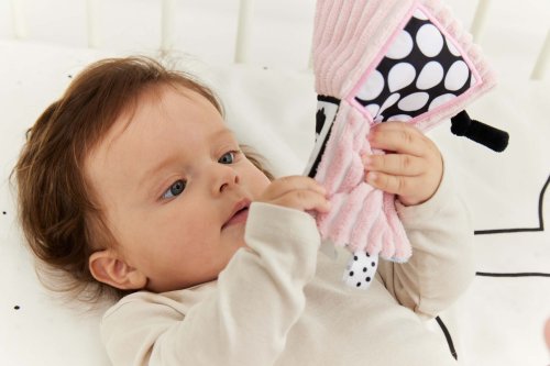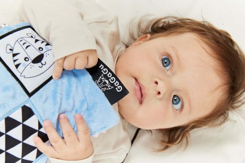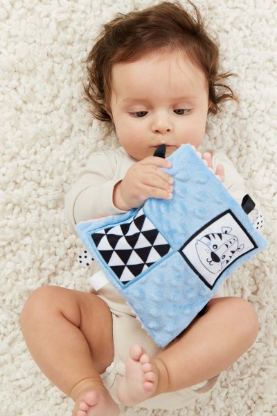Skutečný génius je člověk, který má všestranné nadání a zájmy. Proto je třeba dbát na komplexní rozvoj již od prvních dnů života. V tom může pomoct oboustranná šusticí dečka s obrázkem tygra na jedné straně a ovce na druhé. Hračka je určena pro děti ve věku 0m+.Dečka má kontrastní barvy a vzory, což stimuluje zrak dítěte a šustivý materiál uvnitř hračky stimuluje jeho sluch. Dítě má možnost poznávat různé textury, díky kterým si rozvíjí hmat. Doplňkové stuhy, plyšová poutka, velký štítek – usnadňují dítěti uchopení hračky a podporují tzv. cvičení jemné motorické dovednosti (pohyby prstů a rukou). Dečka je oboustranná – na každé straně má jinou grafiku: na jedné straně ovce – na druhé tygr. Hračka je velmi lehká a šikovná, snadno skladná, ideální na procházku nebo výlet. Věk 0+