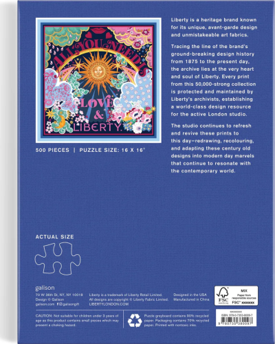 Puzzle Liberty: Všechno, co potřebuješ, je láska v obalu ve tvaru knihy je obměnou klasického 500 dílného puzzle.