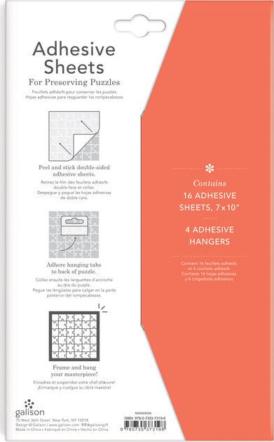 Už žádné zasychání - se samolepicí fólií pro snadné a rychlé nalepení puzzle jednoduše zarámujete složený obrázek i Vy! Výhody lepicí fólie: - díky lepení z rubové strany není vzhled obrázku (přední strana) narušená a nevznikají nevzhledné bubliny - ihned po nalepení lze obrázek pověsit (není potřeba čekat na zaschnutí jako u lepidla) - nehrozí ušpinění od lepidla Výrobek obsahuje 16 listů folie, každý o rozměru 17,8 x 25,4 cm a 4 lepící úchyty pro dočasné uskladnění. Balení by mělo vystačit na puzzle s 2000 dílky nebo na dvě puzzle s 1000 dílky. Návod na použití: Složené puzzle položte obrázkem dolů a na jeho zadní stranu si rozložte fólie tak, aby přesahovaly přes sebe aspoň 1 cm. Fólii lze stříhat nůžkami, avšak vždy ponechejte 1-2mm na okraji obrázku. Jakmile je pokrytý celý obrázek, postupně odlepte z archů fólie krycí vrstvu a nalepte ji na vybrané místo. Po aplikaci všech lepicích fólií je pevně přitiskněte, případně pro tento účel použijte váleček na těsto nebo prázdnou láhev.