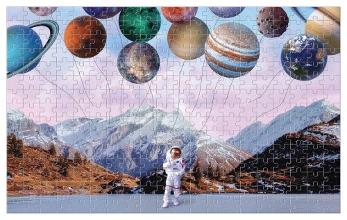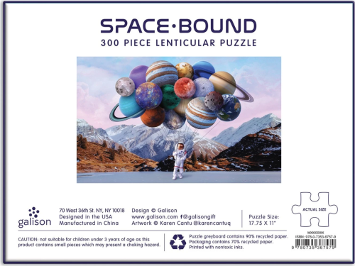 Na tomto 300 dílném jedinečném puzzle sledujte, jak balóny ve tvaru planet plují do vesmíru s touto surrealistickou ilustrací od Karen Cantu. Měnící se obrázek je umístěn také na přední straně krabice, takže můžete vidět proměnu i při skládání! Puzzle jsou baleny v pevných krabicích s matným povrchem. Hlavní vlastnosti: Obsahuje 300 dílkůKouzelné měnící se puzzlePotištěno netoxickými inkoustyPrémiová kvalita puzzleJednotlivé dílky do sebe přesně pasujíRozvíjí logické myšlení a motoriku