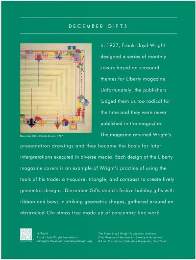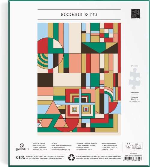 Puzzle od anglického výrobce Galison. Zlaté části obrázku umocňují Wrightovo dílo. Metalické puzzle má speciální povrch, který se na světle z různých úhlů kovově leskne a vytváří tak dojem, že je puzzle ze zlata, stříbra a dalších lesklých kovů. Rozměr složeného puzzle cca 51 x 69 cm