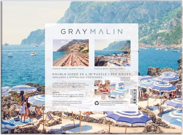 Letecká fotografie Gray Malina vzbuzující úctu, jsou vytvořeny z helikoptéry a vytváří ohromující vizuální obraz plný barev. Toto oboustranné 500 dílkové puzzle nabízí fotogie krásné italské pláže, která zachycuje podstatu letní blaženosti. Design Gray Malin. Hlavní vlastnosti: Obsahuje 500 oboustranných dílkůDílky jsou rozlišeny lesklou a matnou povrchovou úpravouPotištěno netoxickými inkoustyPrémiová kvalita puzzleJednotlivé dílky do sebe přesně pasujíRozvíjí logické myšlení a motoriku
