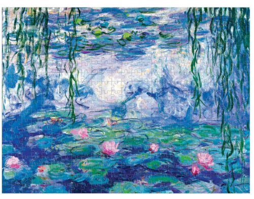 Puzzle mají z obou stran motiv dvou ikonických obrazů impresionistického malíře Claudea Moneta .