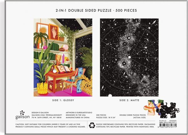 Dvojnásobná porce skládání! Oboustranné puzzle s motivem Hvězdé oblohy. Puzzle má rozdílný povrch - z jedné strany je lesklé, z druhé strany je matné pro snazší rozpoznání motivů. Součástí balení jse předloha skládaného motivu. Rozměr složeného puzzle cca 61 x 46 cm