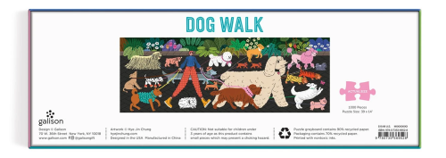 Panoramatické puzzle s životem psů na procházce obsahuje barevnou a zábavnou ilustraci pejskaře s 20 psy na vodítku. Puzzle Galison jsou baleny v pevných krabicích s matným povrchem pro lehké použití i skladování. Ideální také jako dárek. Hlavní vlastnosti: 1000 dílkůsoučástí balení je návodný obrázek rozvíjí logické myšlení a motoriku