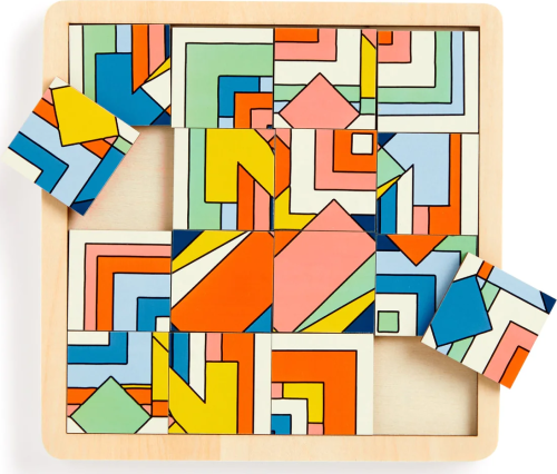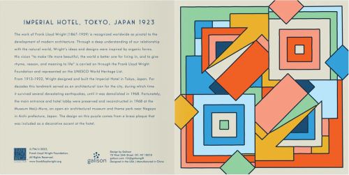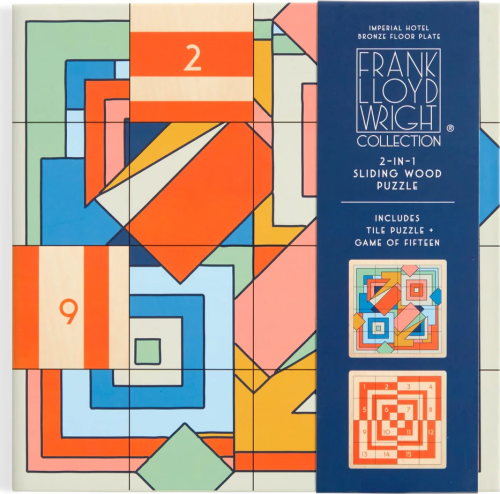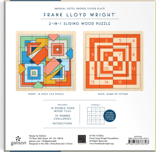 Posuvné dřevěné puzzle Frank Lloyd Wright: Imperial Hotel 2v1 je puzzle s Wrightovým designem podlahy hotelu Imperial a hrou - Hra o patnáct. Strana s motivem: