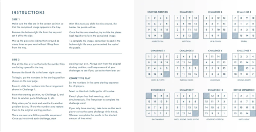 Otočte všechny dílky puzzle a odstraňte 16.dílek. Hráč posouvá dílky (aniž by je zvedal) po podkladové desce tak, aby dílky složil podle zadání v přiloženém návodu. Obtížnost si hráč volí sám nebo podle návodu. Výchozí pozice je vždy stejná. Dílky může hráč zvednout pouze tehdy, když se zasekl a chce se vrátit zpět na výchozí pozici.