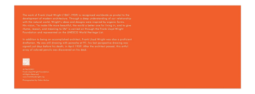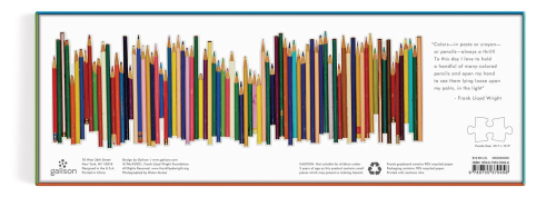 Barevné pastelky Franka Lloyda Wrighta jako 1000dílné puzzle. Panoramatická fotografie z Wrightovy osobní sbírky, ostrouhané pastelky z jeho oblíbené palety. Hotové puzzle je unikátně vysekáváno okolo pastelek, má tak jejich tvar. Puzzle Galison jsou zabaleny v matných, pevných krabicích, jsou perfektní jako dárek. Můžete ji také použít jako úložný prostor. V balení také obrázek plně sestaveného puzzle jako předloha. Hlavní vlastnosti: Obsahuje 1000 dílkůPrémiová kvalita puzzleJednotlivé dílky do sebe přesně pasujíRozvíjí logické myšlení a motoriku