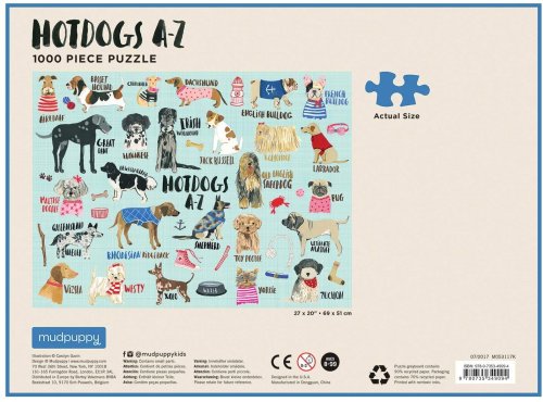 Sestavte toto 1000 dílkové rodinné puzzle od Mudpuppy a odhalte sérii hravých pejsků, které představují každé písmeno abecedy. Tento zábavný a poutavý design vytvořil Carolyn Gavin. Baleno v robustní krabičce. Hlavní vlastnosti: Obsahuje 1000 dílkůDesign vytvořil Carolyn GavinPotištěno netoxickými inkoustyPrémiová kvalita puzzleJednotlivé dílky do sebe přesně pasujíRozvíjí logické myšlení a motoriku