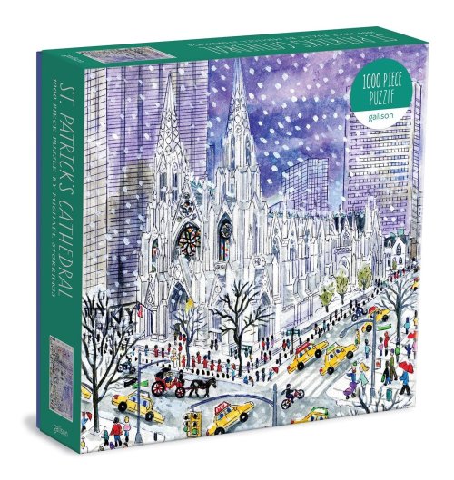 Oceňovaný designér, ilustrátor a kreativní ředitel Michael Storrings zachycuje ikonický katolický kostel a dominantu New Yorku, katedrálu sv. Patrika. Puzzle jsou baleny v pevných krabicích s matným povrchem. Součástí je také příloha s celým obrázkem puzzle. Hlavní vlastnosti: Obsahuje 1000 dílků Prémiová kvalita puzzle Jednotlivé dílky do sebe přesně pasují Rozvíjí logické myšlení a motoriku