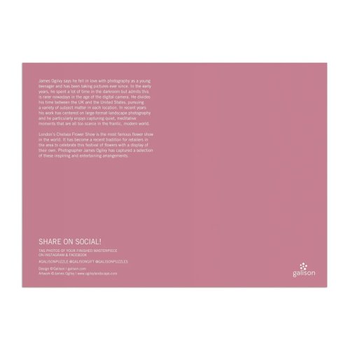 Puzzle představuje fotografie města Londýn zahaleného do květin pro krásný a náročný zážitek z puzzle. Puzzle je baleno v pevné krabici, pro opětovné použití a skladování. Ideální jako dárek. Autorem obrázku je James Ogilvy. Puzzle jsou vyrobeny za použití významného podílu recyklovaného papíru a nabízí špičkový potisk nezávadnými barvami. Jsou opatřeny matnou povrchovou úpravou, která zajišťuje za všech okolností věrné podání detailů i barev. Jejich zadní strana je potažena hladkým, na dotek příjemným povrchem, díky němuž se při skladování rozloženého puzzle netvoří prach. Spolu s pečlivě zabalenými dílky naleznete v balení také letáček s návodným obrázkem, který zpravidla obsahuje další informace o tvůrcích a pozadí vzniku díla. Dodáváno v mimořádně pevné a poutavě zpracované kartonové krabičce vyrobené z recyklovaného kartonu a udržitelně získaných materiálů s certifikací FSC®. Hlavní vlastnosti: 1000 precizně vyřezaných dílkůvyrobeno s použitím recyklovaných a udržitelně získaných materiálůpečlivě vybraný motiv od renomovaných tvůrců a umělcůpotisk a provedení nejvyšší kvalityobsahuje návodný obrázek