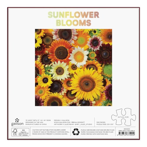 Oslnivá záplava květů otáčejících se za sluncem vnese do Vašeho domova hřejivou atmosféru léta. Autorem obrázku je americká fotografka Julie Seabrook Ream. Puzzle Galison jsou vyrobeny za použití významného podílu recyklovaného papíru a nabízí špičkový potisk nezávadnými barvami. Jsou opatřeny matnou povrchovou úpravou, která zajišťuje za všech okolností věrné podání detailů i barev. Jejich zadní strana je potažena hladkým, na dotek příjemným povrchem, díky němuž se při skladování rozloženého puzzle netvoří prach. Spolu s pečlivě zabalenými dílky naleznete v balení také letáček s návodným obrázkem, který zpravidla obsahuje další informace o tvůrcích a pozadí vzniku díla. Dodáváno v mimořádně pevné a poutavě zpracované kartonové krabičce vyrobené z recyklovaného kartonu a udržitelně získaných materiálů s certifikací FSC®. Hlavní vlastnosti: 500 precizně vyřezaných dílkůvyrobeno s použitím recyklovaných a udržitelně získaných materiálůpečlivě vybraný motiv od renomovaných tvůrců a umělcůpotisk a provedení nejvyšší kvalityobsahuje návodný obrázek