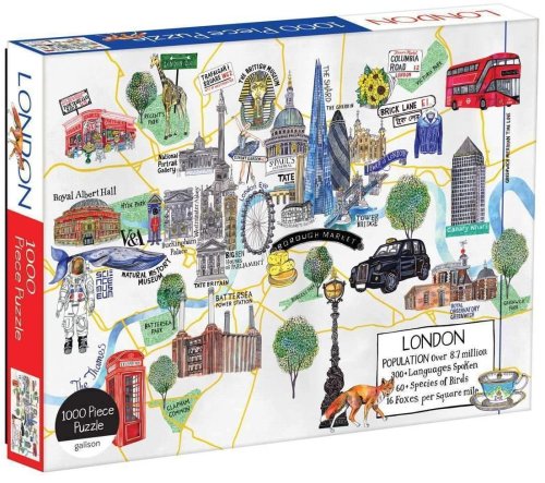 Poznejte Londýn zpracováním této ilustrované mapy města s nejznámějšími místy a památkami Londýna, včetně Buckinghamského paláce, Trafalgarského náměstí, Royal Albert Hall a mnoha dalších. Pzzle je zabaleno ve stylové robustní krabičce s matným povrchem. Design Hennie Haworth. Hlavní vlastnosti: Obsahuje 1000 dílkůPotištěno netoxickými inkoustyPrémiová kvalita puzzleJednotlivé dílky do sebe přesně pasujíRozvíjí logické myšlení a motoriku