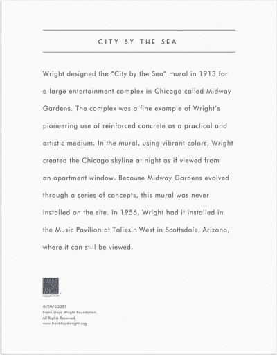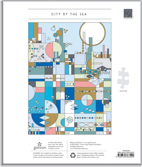Frank Lloyd Wright navrhl nástěnnou malbu „City by the Sea“ v roce 1913, pro zábavní komplex v Chicagu. Tento komplex je skvělým příkladem toho, proč byl Wright průkopníkem ve využití železobetonu k umění. 1000dílné puzzle zachycuje „Město u moře“ přes okno bytu. Nový pohled na ikonické umění. Na dílcích najdete detaily zvýrazněné folií, puzzle přinese radost a relaxaci amatérům i profesionálům. Součástí je také obrázková předloha. Rozměry po složení 508 x 686 mm. Hlavní vlastnosti: obsahuje 1000 dílkůilustrace Frank Lloyd Wrightjednotlivé dílky do sebe přesně pasujírozvíjí logické myšlení a motorikuskvělý design