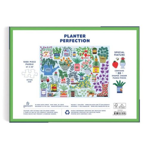 Puzzle s tvarovanými dílky zobrazuje výsadbu květin do různých druhů nádob. Toto puzzle obsahují i 20 speciálně tvarovaných dílků. Puzzle je baleno v pevné krabici, pro opětovné použití a skladování. Ideální jako dárek. Autorem obrázku je Holly Maguire. Puzzle jsou vyrobeny za použití významného podílu recyklovaného papíru a nabízí špičkový potisk nezávadnými barvami. Jsou opatřeny matnou povrchovou úpravou, která zajišťuje za všech okolností věrné podání detailů i barev. Jejich zadní strana je potažena hladkým, na dotek příjemným povrchem, díky němuž se při skladování rozloženého puzzle netvoří prach. Spolu s pečlivě zabalenými dílky naleznete v balení také letáček s návodným obrázkem, který zpravidla obsahuje další informace o tvůrcích a pozadí vzniku díla. Dodáváno v mimořádně pevné a poutavě zpracované kartonové krabičce vyrobené z recyklovaného kartonu a udržitelně získaných materiálů s certifikací FSC®. Hlavní vlastnosti: 1000 precizně vyřezaných dílkůvyrobeno s použitím recyklovaných a udržitelně získaných materiálůpečlivě vybraný motiv od renomovaných tvůrců a umělcůpotisk a provedení nejvyšší kvalityobsahuje návodný obrázek