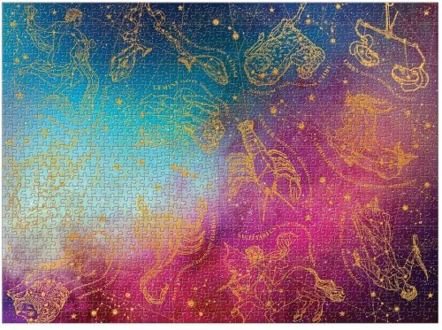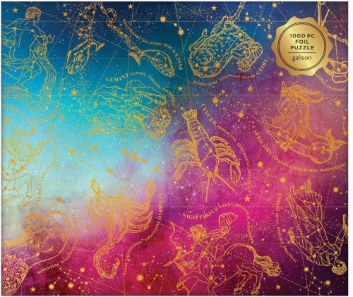 Dvanáct znamení zvěrokruhu je na tomto puzzle zdobenou zlatou fólií ve třpytu vesmíru. Puzzle jsou baleny v robustních krabičkách s matným povrchem. Hlavní vlastnosti: obsahuje 1000 dílkůpotištěno netoxickými inkoustyprémiová kvalita puzzlejednotlivé dílky do sebe přesně pasujírozvíjí logické myšlení a motoriku