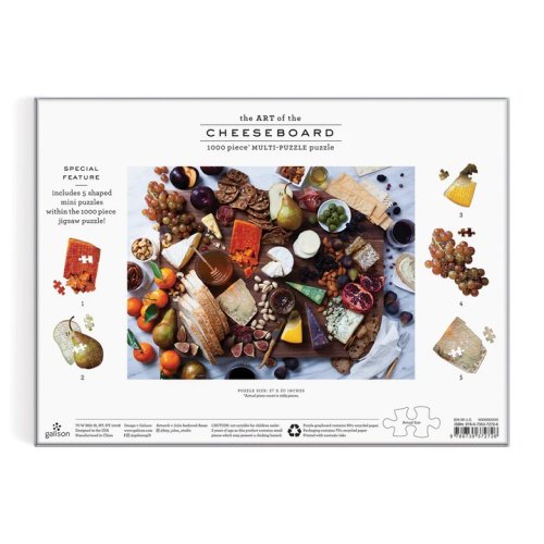 Sýrové degustační prkénko obsahuje strhující fotografii od Julie Seabrook Ream, na níž je krásně připraveno prkénko plné sýrů, chleba, oliv, fíků a dalších lahodných jídel. Včetně hroznů a nakrájené hrušky. Toto puzzle obsahuje také 5 mini puzzle. Je baleno v pevné krabici, pro opětovné použití a skladování. Ideální jako dárek. Puzzle jsou vyrobeny za použití významného podílu recyklovaného papíru a nabízí špičkový potisk nezávadnými barvami. Jsou opatřeny matnou povrchovou úpravou, která zajišťuje za všech okolností věrné podání detailů i barev. Jejich zadní strana je potažena hladkým, na dotek příjemným povrchem, díky němuž se při skladování rozloženého puzzle netvoří prach. Spolu s pečlivě zabalenými dílky naleznete v balení také letáček s návodným obrázkem, který zpravidla obsahuje další informace o tvůrcích a pozadí vzniku díla. Dodáváno v mimořádně pevné a poutavě zpracované kartonové krabičce vyrobené z recyklovaného kartonu a udržitelně získaných materiálů s certifikací FSC®. Hlavní vlastnosti: 1000 precizně vyřezaných dílkůvyrobeno s použitím recyklovaných a udržitelně získaných materiálůpečlivě vybraný motiv od renomovaných tvůrců a umělcůpotisk a provedení nejvyšší kvalityobsahuje návodný obrázek