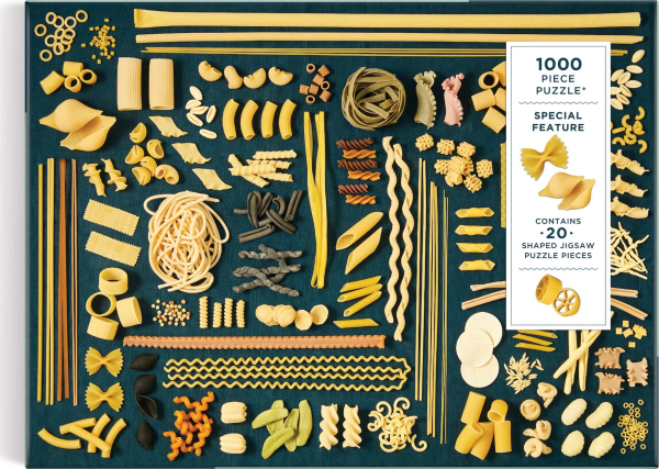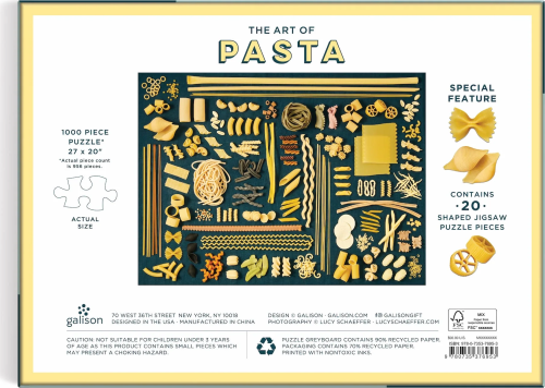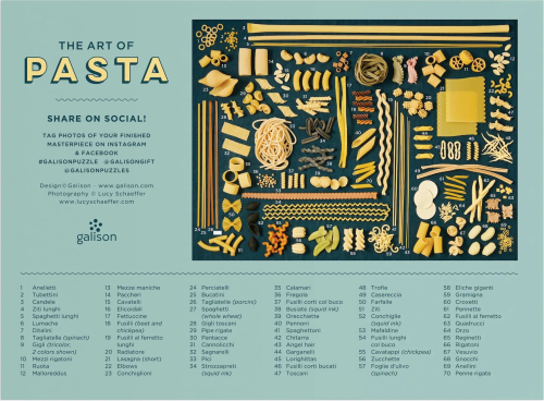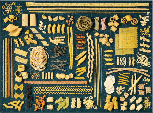 Puzzle obsahuje 20 speciálních dílků ve tvaru těstovin. Součástí balení je předloha skládaného motivu. Rozměr složeného puzzle cca 69 x 51 cm