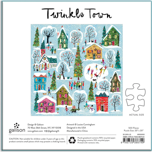 Toto 500dílné puzzle 500dílné představuje rozmarnou ilustraci zasněženého města uprostřed zimních aktivit. Puzzle je zábavou pro celou rodinu! Puzzle je baleno v pevných krabicích s matným povrchem. Umělec Louise Cunningham. Hlavní vlastnosti: Obsahuje 500 dílkůPotištěno netoxickými inkoustyPrémiová kvalita puzzleJednotlivé dílky do sebe přesně pasujíRozvíjí logické myšlení a motoriku
