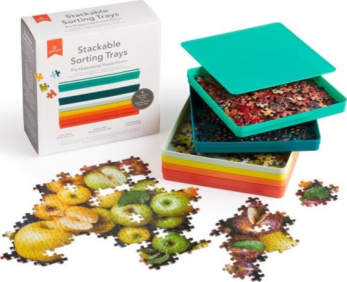 Třídič na puzzle - to je šest praktických nádob ve tvaru tácku: - každý zásobník pojme cca 230 dílků - přehledné třídění puzzle dle tvaru nebo barev - po skládání lze přihrádky jednoduše naskládat na sebe (stohovat) - třídič i s dílky lze uschovat zpět do krabice, zabírají méně místa a dílky se neztratí - pomůže udržet pořádek Balení obsahuje 6 ks různobarevných třídičů a víko na horní zásobník, rozměry: 19,5 x 19,5 x 1,2 cm. Třídič na puzzle GALISON má kapacitu cca 1350 dílků, lze jej využít i při skládání větších puzzle (pro roztřídění části dílků) .