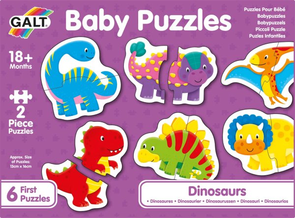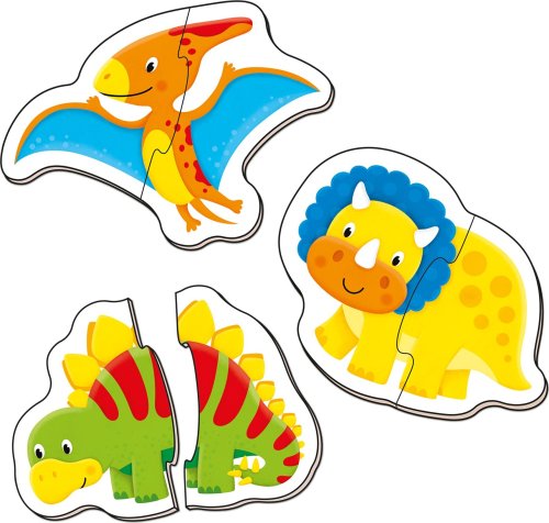 Baby puzzle i pro Vaše dítě. Šest obrysových dvojiček pro nejmenší děti s motivem dinosaurů. Velké dílky s tloušťkou 3 mm jsou pro malé dětské ručičky snadno uchopitelné a první skládání rozvíjí manuální zručnost, koordinaci i prostorovou orientaci. Přibližná velikost jednoho puzzle: 15 x 11 cm. Rozměr složeného puzzle cca 15 x 11 cm