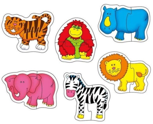 Šest obrysových dvojiček pro nejmenší děti s motivem zvířátek z džungle. Velké dílky s tloušťkou 3 mm jsou pro malé dětské ručičky snadno uchopitelné a první skládání rozvíjí manuální zručnost, koordinaci i prostorovou orientaci.