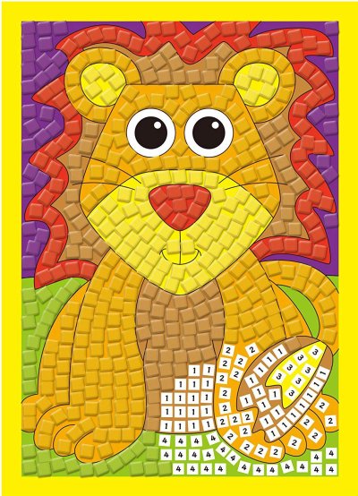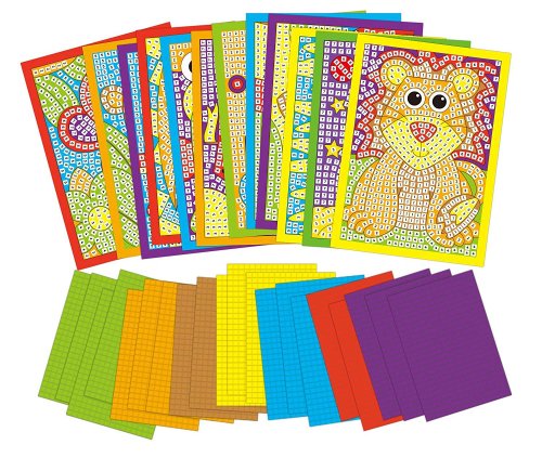 Sada 12 mozaikových obrázků s více než 7500 samolepicími čtverečky podporující kreativitu a manuální zručnost.