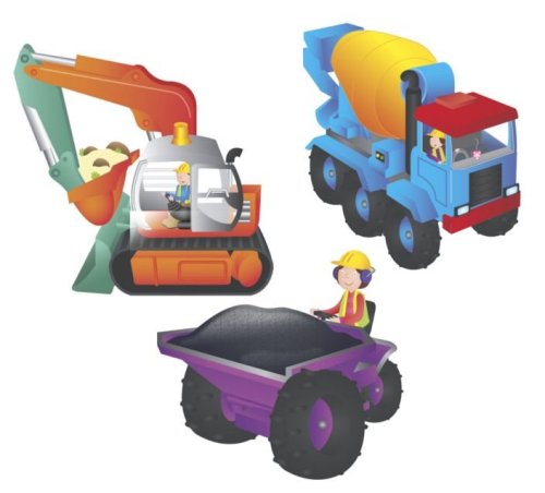Puzzle obsahuje osm dílků vozidel stavby, které mohou děti použít jako šablonu při kreslení.