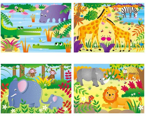 Puzzle v praktickém kufříku s progresivními dílky. Balení obsahuje čtyři odlišné obrázky s motivem divokých zvířat, vždy s jiným počtem dílků. Skládání puzzle napomáhá rozvoji logického myšlení a procvičování trpělivosti. Vhodné pro děti již od 3 let. Dodáváno v kartonu s praktickým plastovým uchem pro snadné přenášení. Rozměr složeného puzzle cca 21 x 15 cm