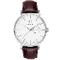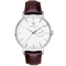 Pánské náramkové hodinky Napájení z baterie Strojek MIYOTA 6P26 Průměr pouzdra 41,5 mm Pouzdro ve tvaru kruhu Ocelové pouzdro Stříbrná barva pouzdra Kožený tah Hnědá barva tahu Ručičkový ciferník Bílá barva ciferníku Ciferník s dvanácti indexy Materiál skla - minerální sklo Odolné proti vodě během sprchování a mytí Datum