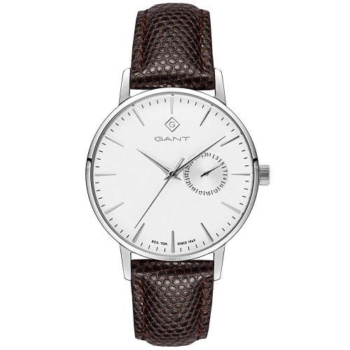 Dámské náramkové hodinky Napájení z baterie Strojek MIYOTA 6P26 Průměr pouzdra 38,0 mm Pouzdro ve tvaru kruhu Ocelové pouzdro Stříbrná barva pouzdra Kožený tah Hnědá barva tahu Ručičkový ciferník Bílá barva ciferníku Ciferník s dvanácti indexy Materiál skla - minerální sklo Odolné proti vodě během sprchování a mytí Datum