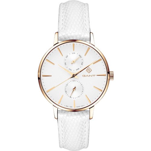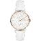 Dámské náramkové hodinky Napájení z baterie Strojek SEIKO VX3P Průměr pouzdra 36,0 mm Pouzdro ve tvaru kruhu Ocelové pouzdro Zlatavá barva pouzdra Kožený tah Bílá barva tahu Ručičkový ciferník Šedá barva ciferníku Ciferník s dvanácti indexy Materiál skla - minerální sklo Odolné proti vodě během sprchování a mytí Datum