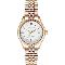 Dámské náramkové hodinky Napájení z baterie Strojek 2115 Průměr pouzdra 34,0 mm Pouzdro ve tvaru kruhu Ocelové pouzdro Zlatavá barva pouzdra Ocelový tah Zlatavá barva tahu Ručičkový ciferník Bílá barva ciferníku Ciferník s dvanácti indexy Materiál skla - minerální sklo Odolné proti vodě během sprchování a mytí Datum