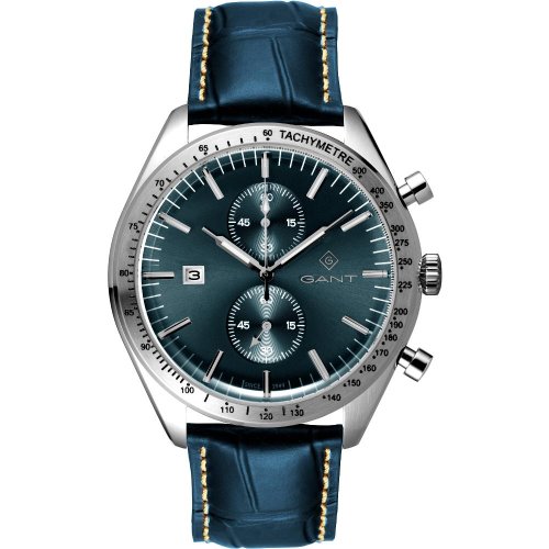 Pánské náramkové hodinky Napájení z baterie Strojek YM91 Průměr pouzdra 44,5 mm Pouzdro ve tvaru kruhu Ocelové pouzdro Stříbrná barva pouzdra Kožený tah Modrá barva tahu Ručičkový ciferník Modrá barva ciferníku Ciferník s dvanácti indexy Materiál skla - minerální sklo Odolné proti vodě během plavání Datum Stopky