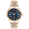 Dámské náramkové hodinky Napájení z baterie Strojek MIYOTA 2115 Průměr pouzdra 37,5 mm Pouzdro ve tvaru kruhu Ocelové pouzdro Růžové zlato barva pouzdra Ocelový tah Růžové zlato barva tahu Ručičkový ciferník Modrá barva ciferníku Ciferník s dvanácti indexy Materiál skla - minerální sklo Odolné proti vodě během plavání Datum