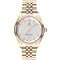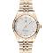 Dámské náramkové hodinky Napájení z baterie Strojek MIYOTA 2115 Průměr pouzdra 37,5 mm Pouzdro ve tvaru kruhu Ocelové pouzdro Růžové zlato barva pouzdra Ocelový tah Růžové zlato barva tahu Ručičkový ciferník Stříbrná barva ciferníku Ciferník s dvanácti indexy Materiál skla - minerální sklo Odolné proti vodě během plavání Datum
