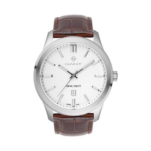 Pánské náramkové hodinky Napájení z baterie Strojek MIYOTA GM12 Průměr pouzdra 43,0 mm Pouzdro ve tvaru kruhu Ocelové pouzdro Stříbrná barva pouzdra Kožený tah Hnědá barva tahu Ručičkový ciferník Stříbrná barva ciferníku Ciferník s dvanácti indexy Materiál skla - minerální sklo Odolné proti vodě během plavání Datum