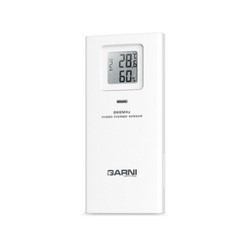 Sedmikanálové bezdrátové čidlo pro měření teploty a relativní vlhkosti, určeno pro Wi-Fi meteorologickou stanici GARNI 3015 Arcus, GARNI 2055 Arcus, GARNI 2040 Arcus, GARNI 1085 Arcus, GARNI 1025 Arcus, GARNI 975, GARNI 935PC, GARNI 925T, hobby meteostanici GARNI 750 a chytrý digitální teploměr s vlhkoměrem GARNI 419T.