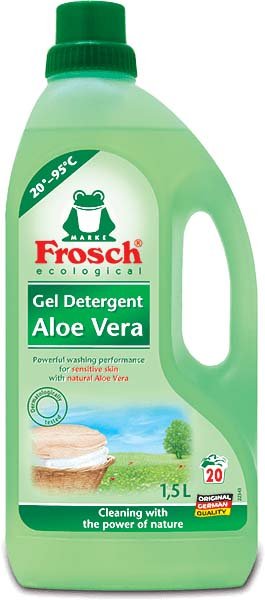 Tekutý prací prostředek sensitive s výtažky z aloe vera Frosch EKO má velmi šetrné složení, které ocení i osoby s citlivou pokožkou